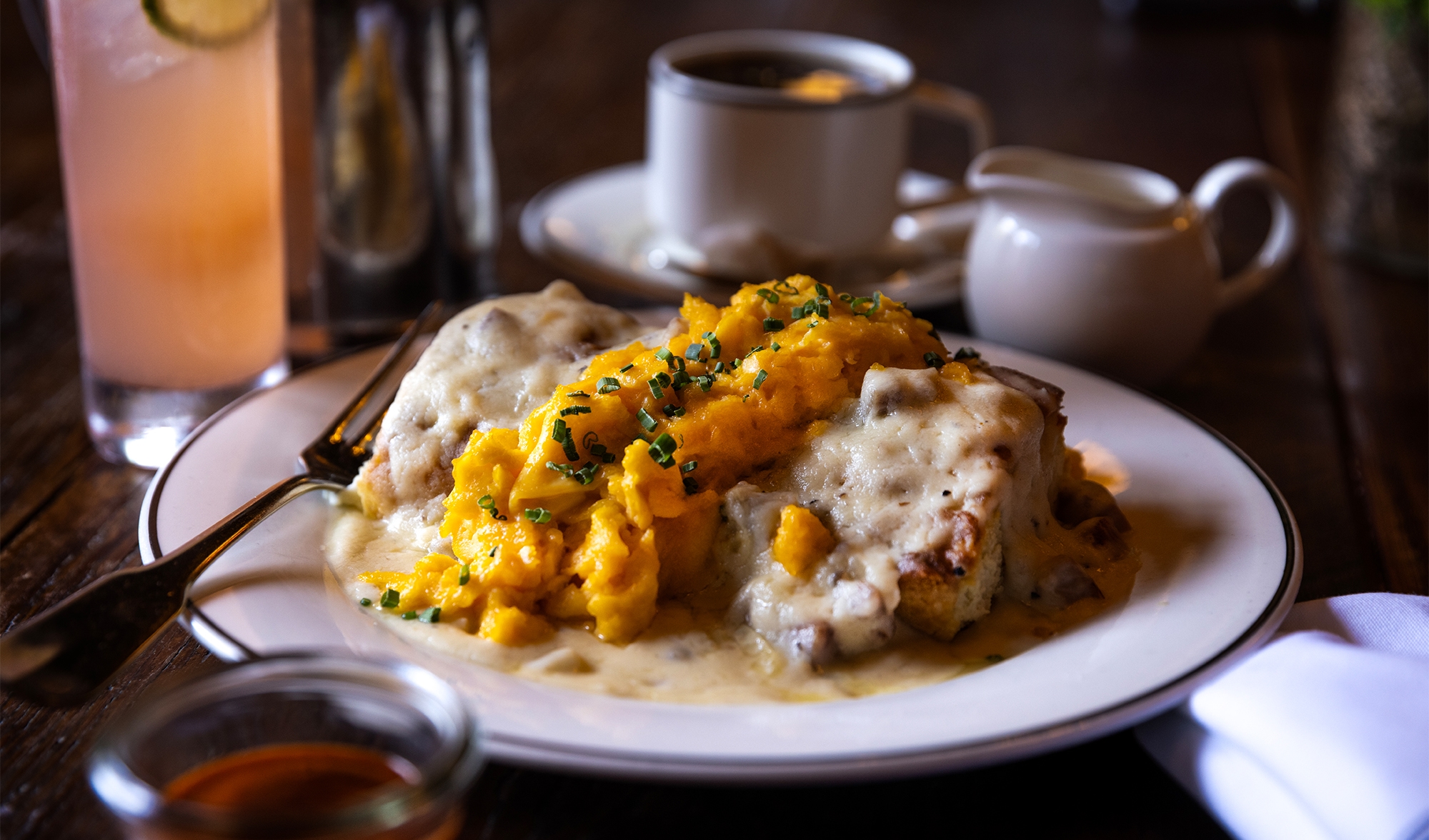 house made biscuit, scrambled egg, hollandaise, cheddar cheese