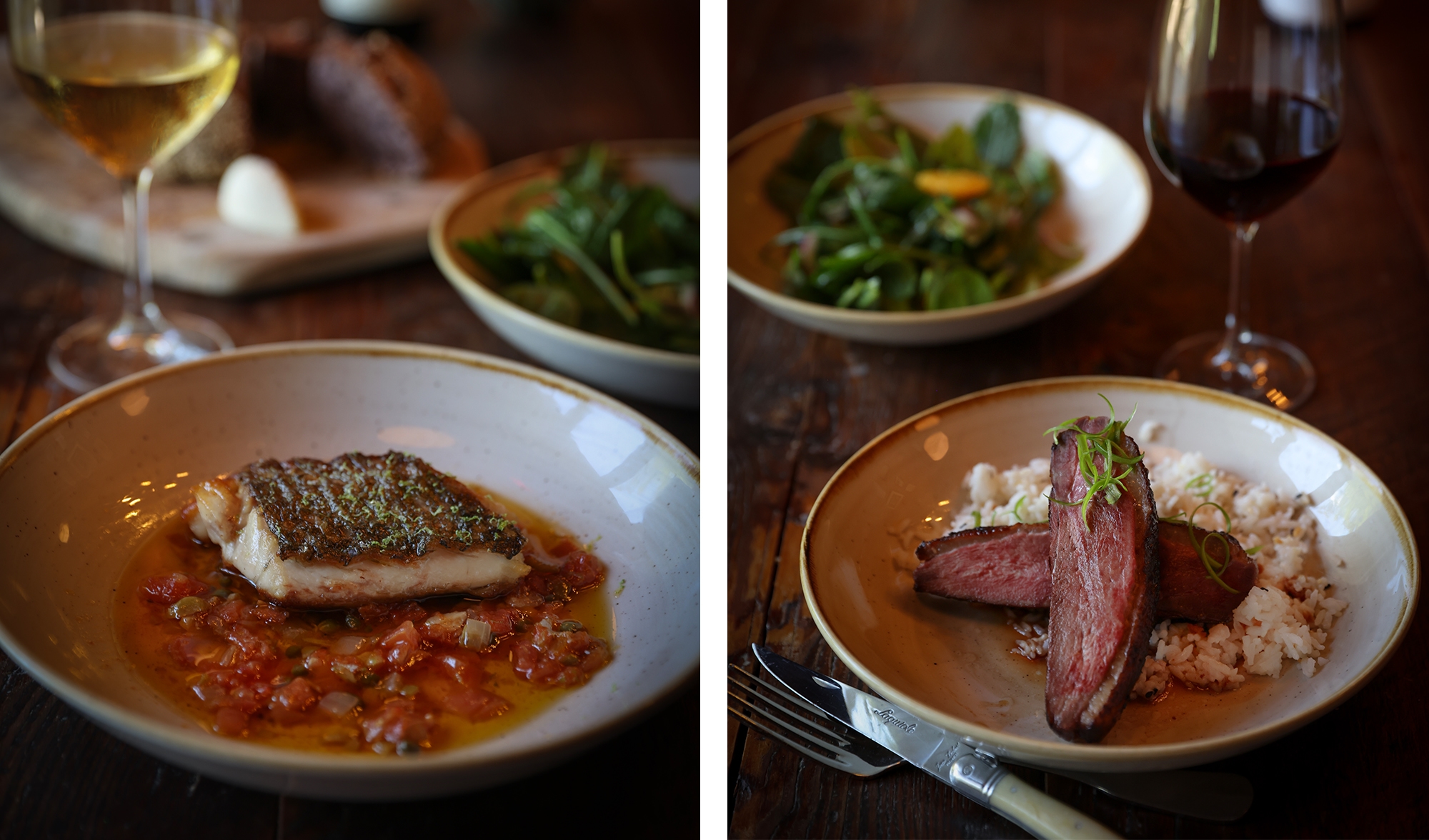 butterflied branzino, sauce diabla, epazote persillade, radish, red leaf lettuce