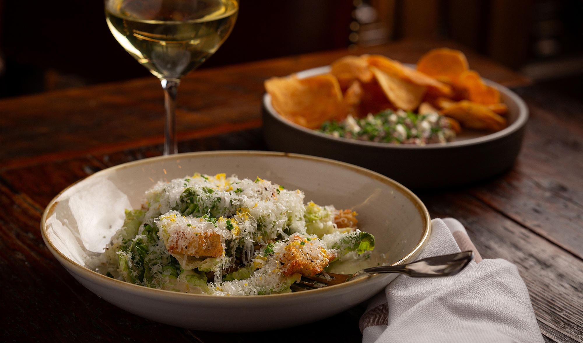 osetra noir caviar, served with potato chips & chive crème fraîche